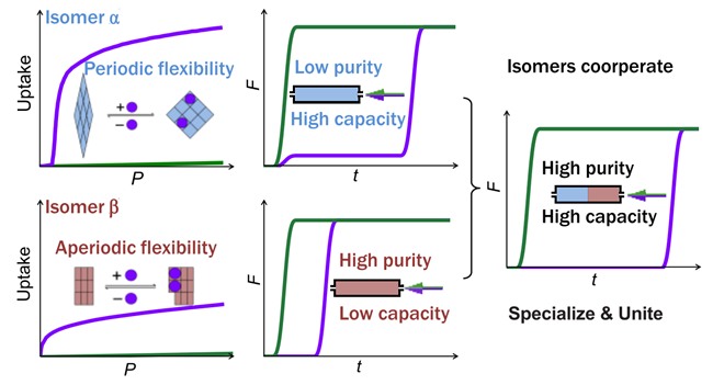 该论文直观展现了多孔材料结构和柔性行为的多样性以及周期性和非周期性柔性行为对吸附分离的优势和劣势,还发现了共吸附行为的潜在优势,为发展新型多孔材料和吸附分离策略提供了理论基础和实验指导。