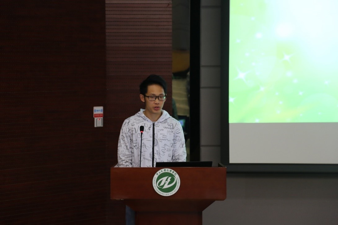随后,参赛学生代表陈浩林发表感言,他讲述了自己从大一的畏头畏尾“害怕”实验,到现在敢于尝试,追求创新的心路历程。陈浩林代表全体参赛同学,宣誓遵守化学实验室安全相关规则,并在竞赛中全力以赴,以科学严谨的态度,认真对待本次竞赛,赛出参赛者的真实水平。