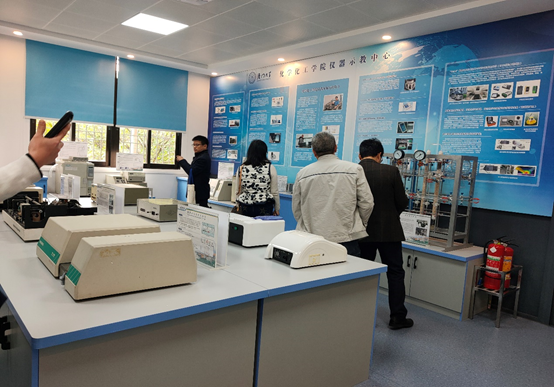 接下来的第二天,参会老师们来到厦门大学化学实验教学中心参观交流,首先参会老师们分别进入所从事的实验学科小组分会场(无机及分析、有机化学、物理化学、仪器分析和综合实验五个会场)进行交流讨论。在各分会场中,厦门大学实验教学中心相关实验课程负责老师就实验课程内容、课程改革、实验室建设与管理等内容进行介绍,而后大家进行深入而热烈的交流讨论。会后,接着参观实验室,厦门大学化学实验教学中心采取的精细化、动态化、人性化、现代化实验室管理模式给参会老师们留下深刻的印象:实验室试剂耗材、仪器乃至消防、急救、防护、清洁等设施和用品都一一采取明确精准的“定位”和“标识”,对化学试剂和药品建立电子台账进行动态管理;将仪器清单、“动态”教材、实验安排表、仪器使用说明书、实验室管理经验、发表的教学论文等都采用信息化管理(生成电子化二维码),以方便学生和相关人员及时了解掌握实验室相关信息等。参观过程中,我院参会老师们还就实验室的硬件设施,包括实验室土建装修、通风、供气等建设方面的问题与其他高校老师进行热烈的交流探讨。