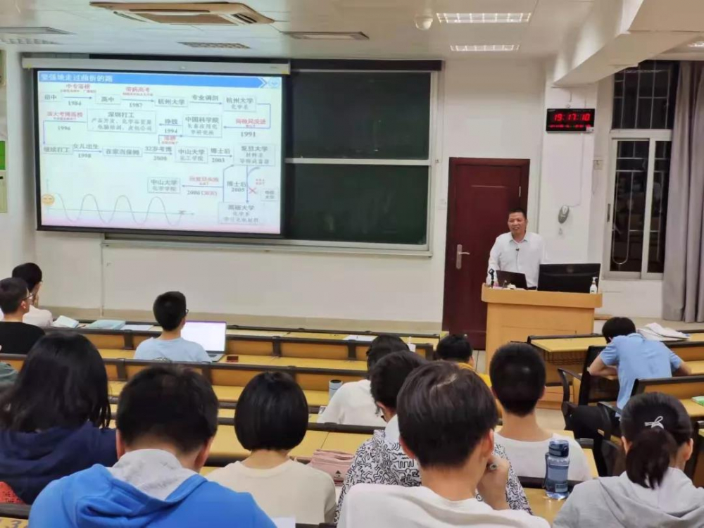 最后,为了让同学们对化学科研有进一步的了解,倪老师特意为大家讲述了自己的求学和科研经历,消除了同学们对化学科研与学习的误解与恐惧,并鼓励同学们要积极关注国家和社会对化学研究及化学人才的需求和动向,将来立志投身到这个学科领域的学习和研究中,为祖国化学事业的发展贡献自己的一份力量。