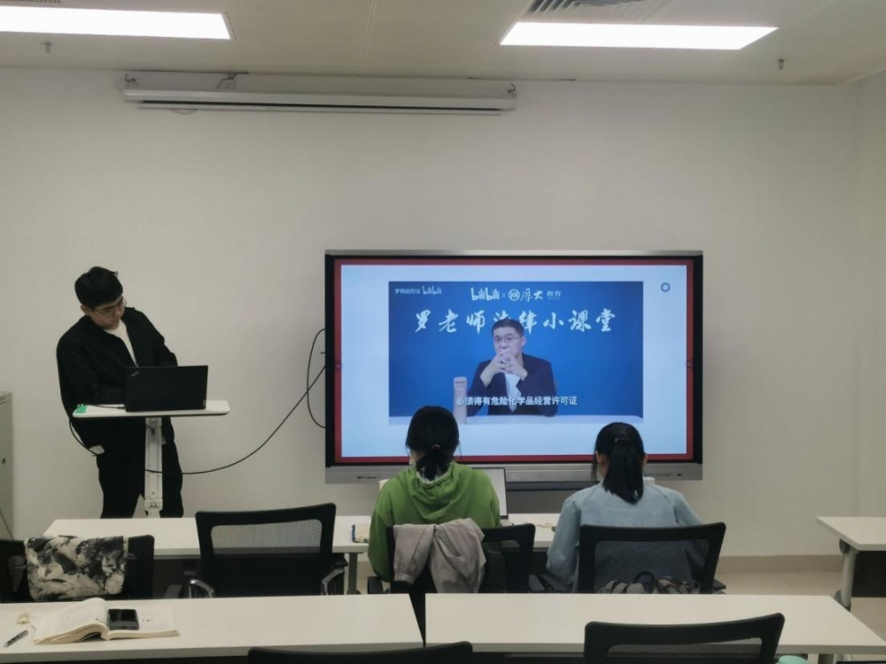 20级强基班通过播放罗翔老师的法制讲堂,介绍了与化学相关的笑气销售与采购中容易出现的违法行为,并就该案例提出问题,由同学判断该案例中的“张三”所犯罪行,在场各位同学们积极回答,加强了对危险化学品监管的法律意识。另外,学院党委副书记谭海燕老师在本次活动中强调同学们学习法律法规特别是学习宪法的重要性,并提醒同学们要加强与专业相关的实验室安全及危险化学品方面专业知识和法律法规的学习。