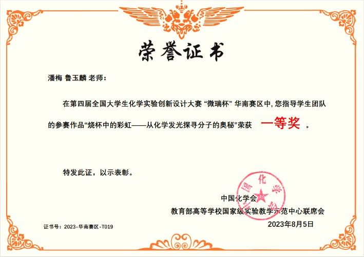 图4 华南赛区获奖证书