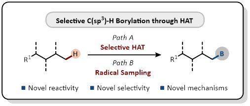 (35) Miao Wang, Yahao Huang, Peng Hu*, Terminal C(sp3)–H borylation through intermolecular radical sampling. Science 2024, 383, 537–544. (https://www.science.org/stoken/author-tokens/ST-1707/full) (Highlighted by National Science Review, 2024, 11, nwae105; 亮点评述:Chin. J. Org. Chem. 2024, 44, 1697-1698; 新华社,光明日报,科学网等媒体报道。)