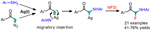 Silver-Catalyzed Geminal Aminofluorination of Diazoketones with Anilines and N-Fluorobenzenesulphonimide.